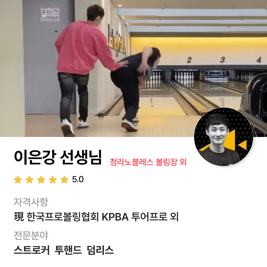 이은강 선생님은 청라 노블레스 볼링장과 라온볼링스포렉스에서 활동 중이에요.