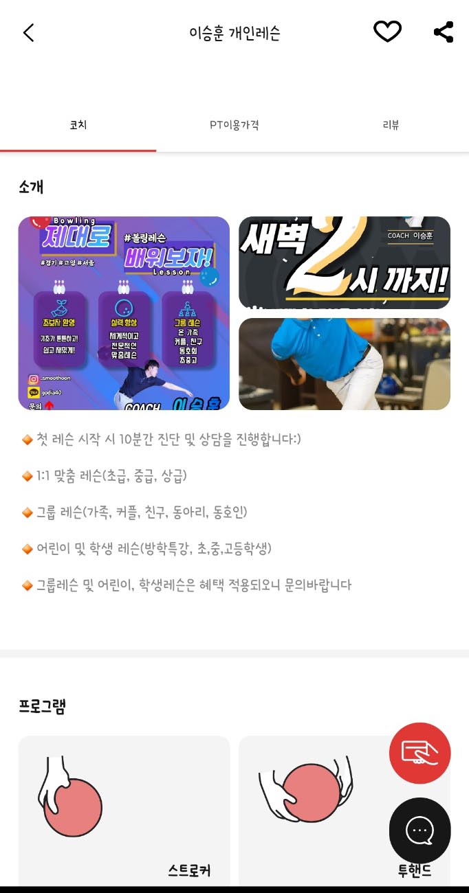 (레슨 가격은 볼닥 어플에서 바로 확인 가능합니다.)