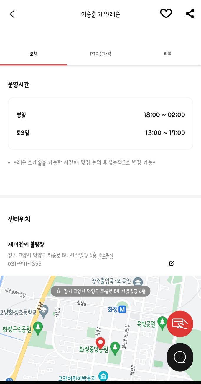 볼닥 어플에 레슨 선생님의 운영시간, 레슨정보 등 레슨에 대한 모든 정보가