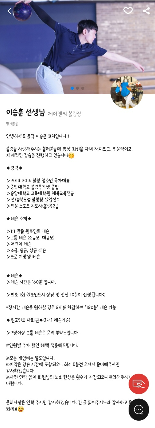 이승훈 선생님은 볼치다볼링장에서 활동 중이에요.