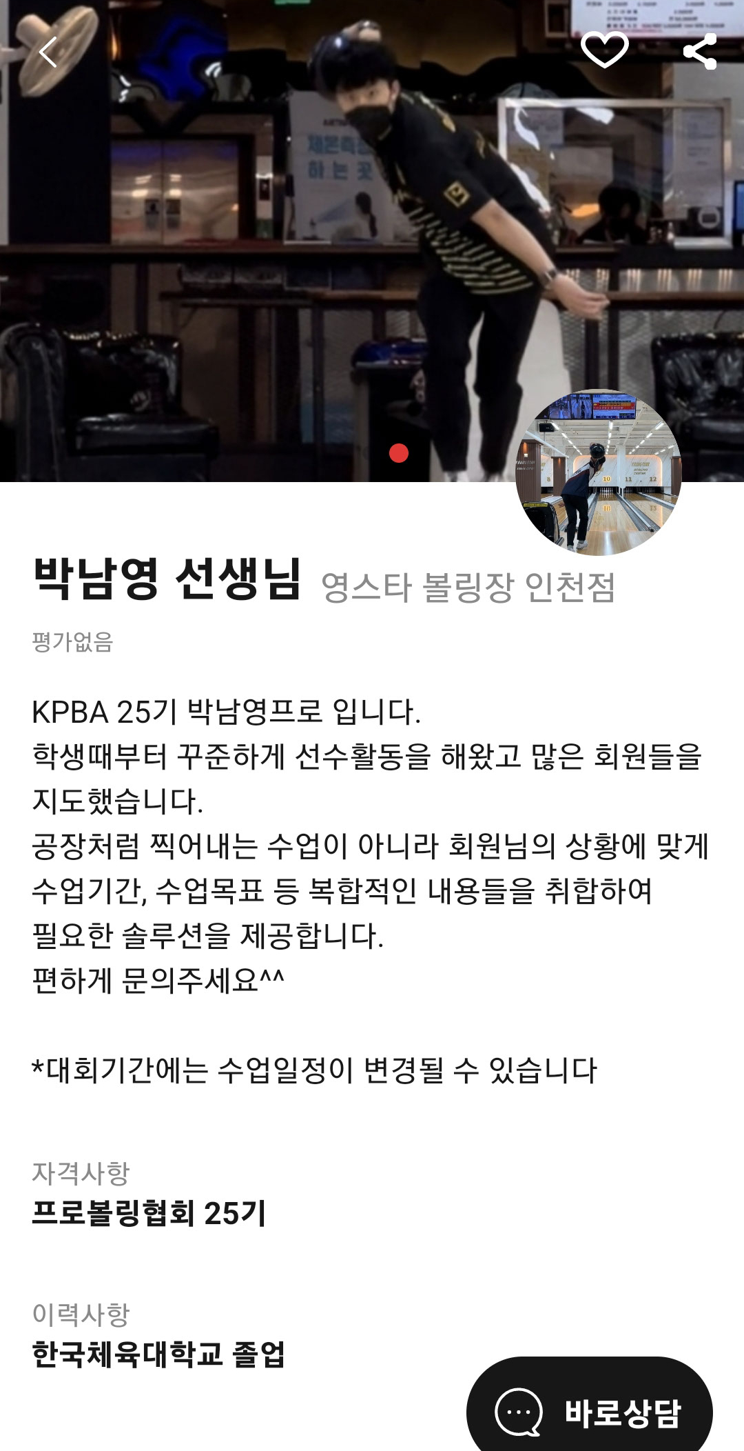 박남영 선생님은 영스타 볼링장 인천점에서 활동 중이에요.