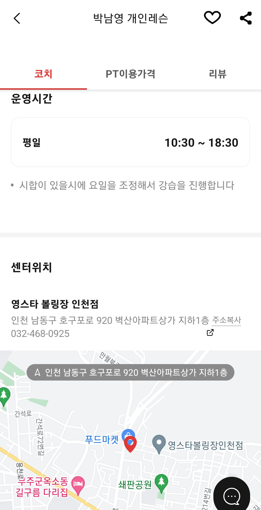 볼닥 어플에 레슨 선생님의 운영시간, 레슨정보 등 레슨에 대한 모든 정보가