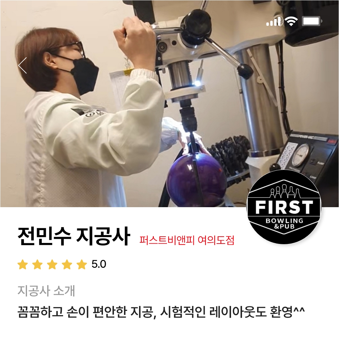 볼링공 추천은 퍼스트비앤피 여의도 프로샵 전민수 지공사(프로 통산3승 유현이프로 전담지공사)