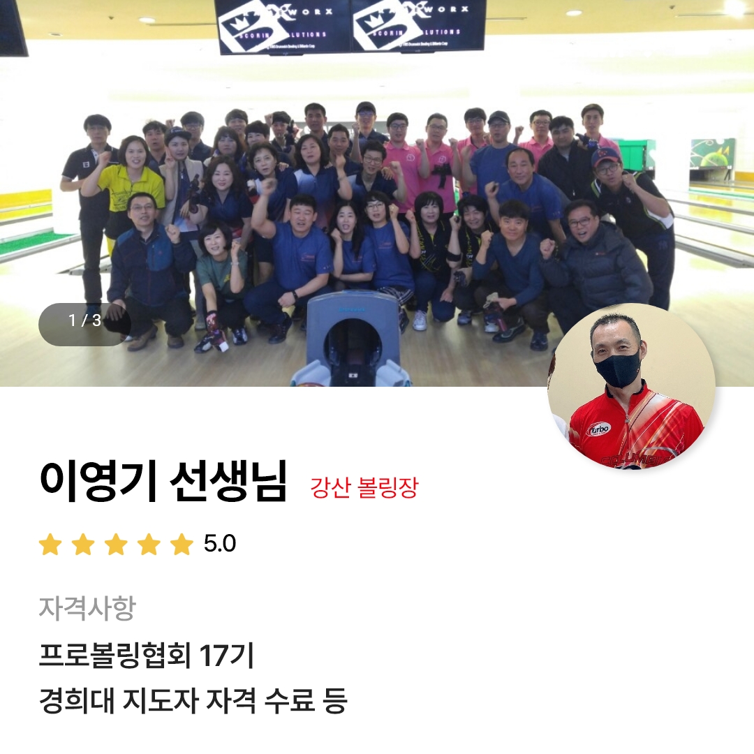 이영기 선생님은 강산볼링장에서 활동 중이에요.