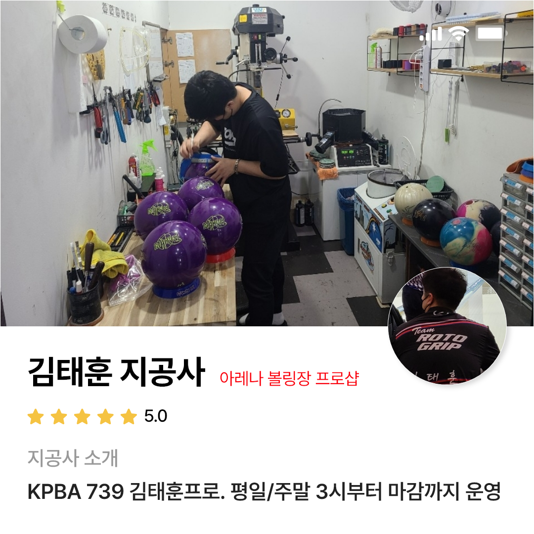 김태훈 지공사님은 아레나볼링장에서 활동하고 있어요.