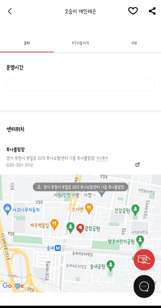 볼닥 어플에 레슨 선생님의 운영시간, 레슨정보 등 레슨에 대한 모든 정보가