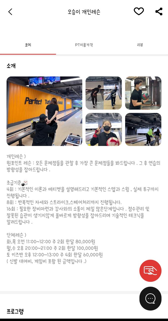 (레슨 가격은 볼닥 어플에서 바로 확인 가능합니다.)