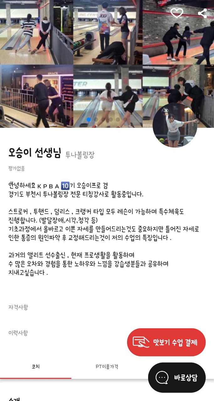 오승이선생님은 투나볼링장에서 활동하고 있어요.