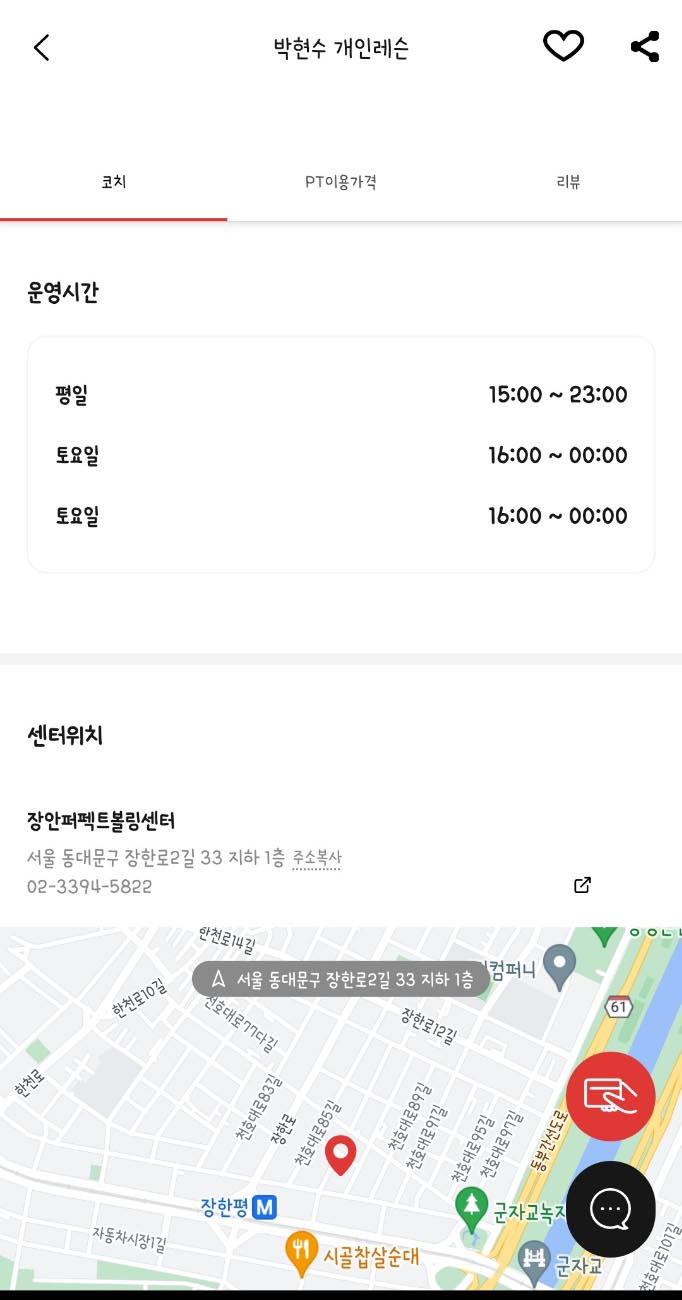 볼닥 어플에 레슨 선생님의 운영시간, 레슨정보 등 레슨에 대한 모든 정보가
